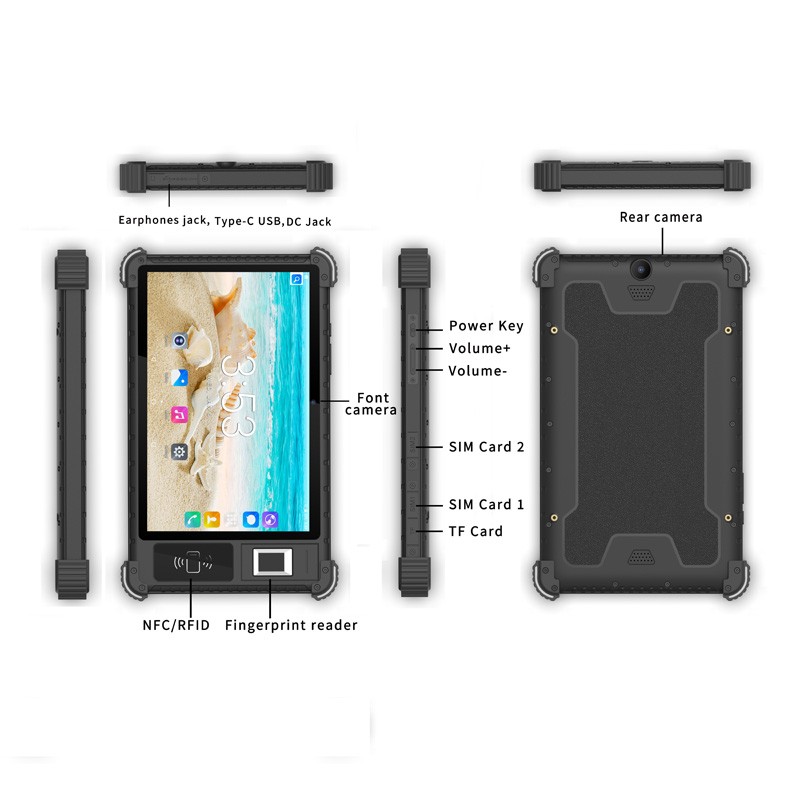 F817 is a fully featured IP65 mobile tablet. It encapsulates Android 10 Operating System, wide selection of fingerprint readers, available from Integrated Biometrics . Developed for applications such as census, voter registration, healthcare, education and public security, law enforcement and eKYC applications. It may be optionally equipped with a contactless card reader (ISO14443 type A/B, ISO18092), the becomes a very versatile terminal smart.